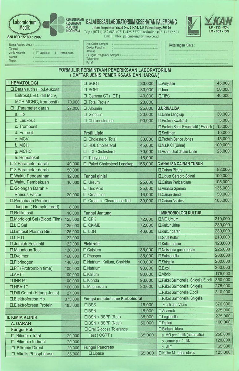 Detail instansi laboratorium. Bblk palembang untuk pelanggan setia pelayanan pemeriksaan laboratorium sudah aktif seperti awal kembali. 12 februari 2018 12 30 yth. Email personil penghubung akan digunakan sebagai username untuk login.
