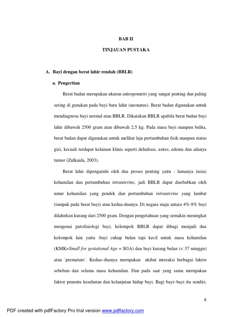 Bblr adalah pdf. Secara nasional berdasarkan analisa lanjut sdki angka bblr sekitar 7 5 11 2 1 3. Bayi berat lahir rendah adalah bayi aterm. Etiologi penyebab terbanyak terjadinya bblr adalah kelahiran prematur. Bblr berat badan lahir rendah diartikan sebagai bayi yang lahir dengan berat badan kurang dari 2500 gram.