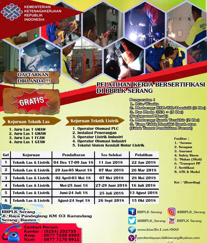 Bbplk serang kembali merekruit calon peserta pelatihan pbk boarding gelombang 2 tahun 2019 jurusan pelatihan pengelasan gmaw 3g dan pemasangan. Silahkan mendaftarkan diri ke bbplk serang ujarnya. Tujuannya untuk membantu pemerintah membantu penanganan covid 19 di kabupaten lebak. Come join us to build your skill here.