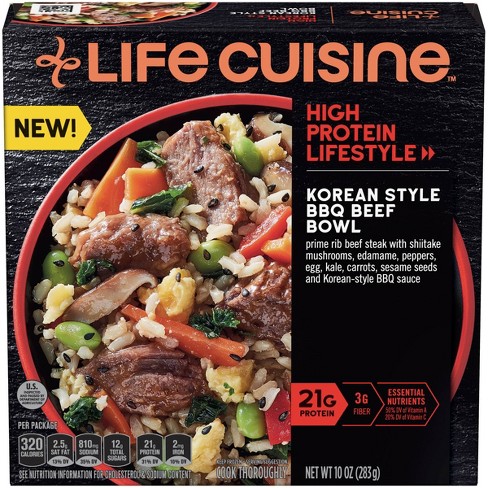 12 g total sugars. 1 package 283g. Korean style bbq beef bowl is filled with prime rib beef steak delicious veggies and korean style bbq sauce. This is a taste test review of the life cuisine high protein lifestyle korean style bbq beef.