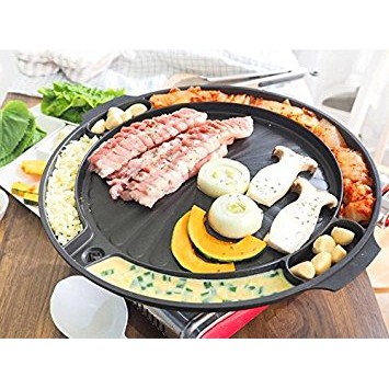 Unlike most grill tops the iwatani smokeless korean bbq grill comes with it s own butane gas powered heat source that allows you to heat and eat easily. Drain channels work properly and the funky swirly design is just an added bonus. Korean bbq nonstick grill pan induction stovetop compatible aluminum non stick coating grill pan for indoor and outdoor with grease draining system 15 inch description durable hardwear enhanced thickness and durable coating make even heat distribution with lots of far infrared ray helping high quality bbq for the best meal without. Korean bbq nonstick grill pan induction stovetop compatible aluminum non stick coating grill pan for indoor and outdoor with grease draining system 15 inch 4 8 out of 5 stars 24 33 99 33.