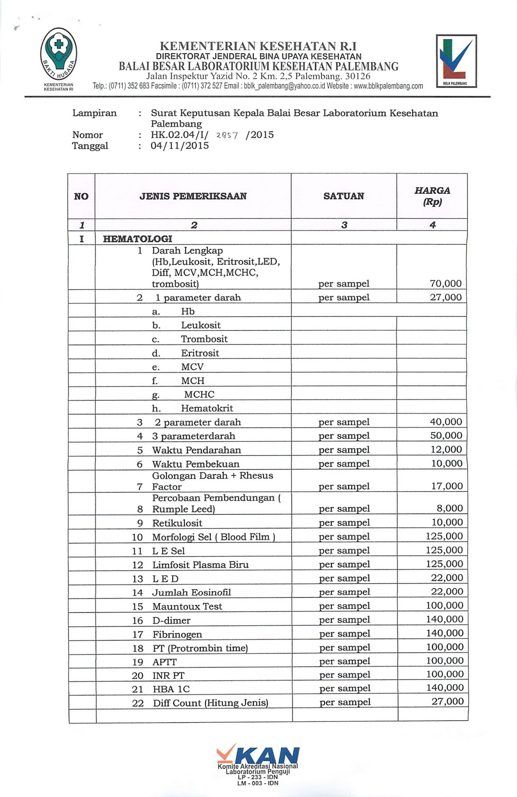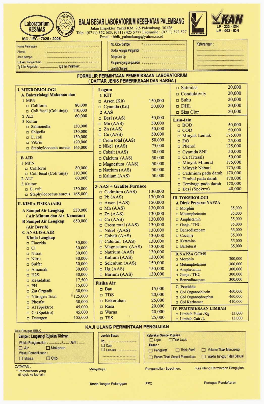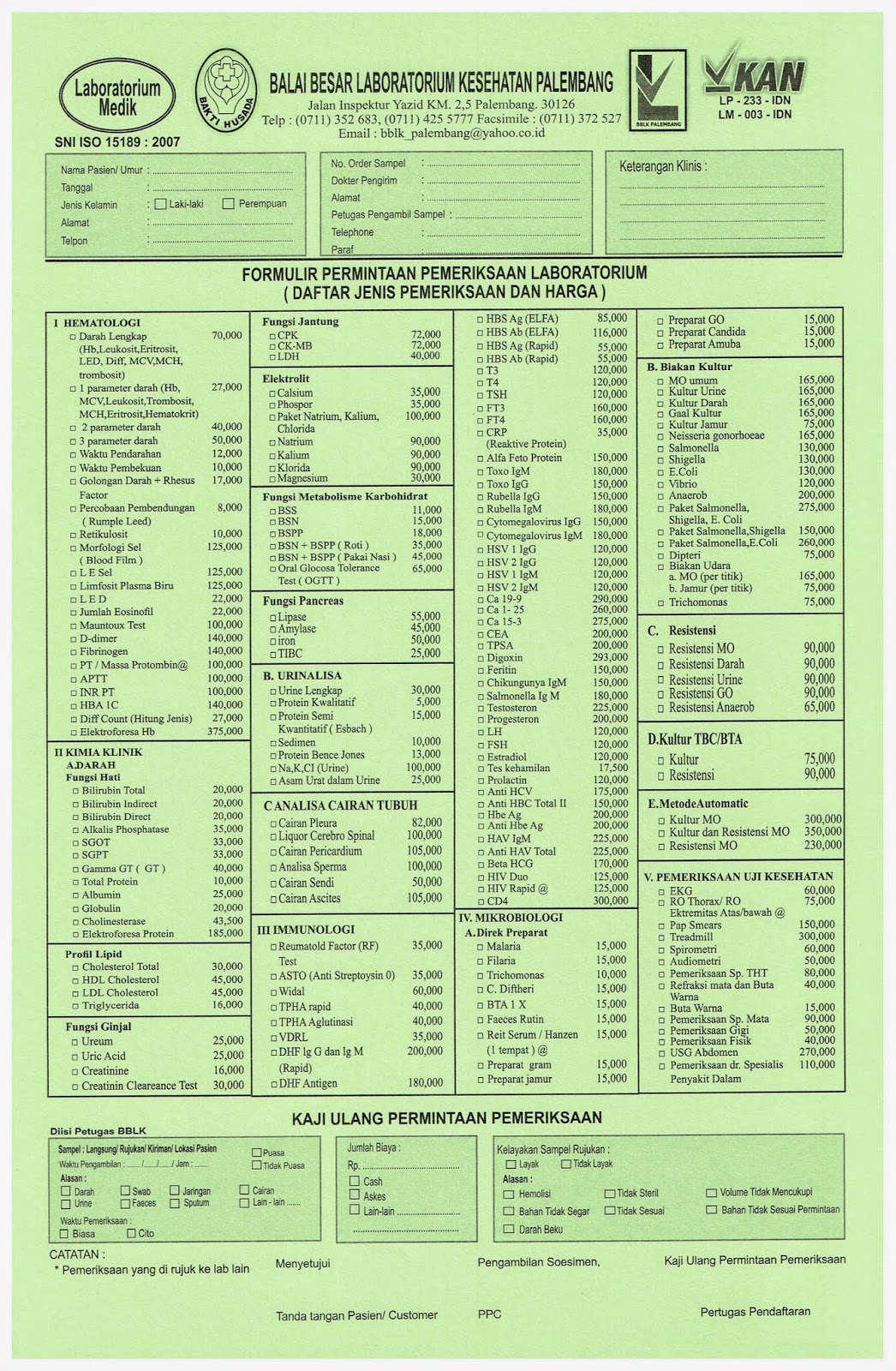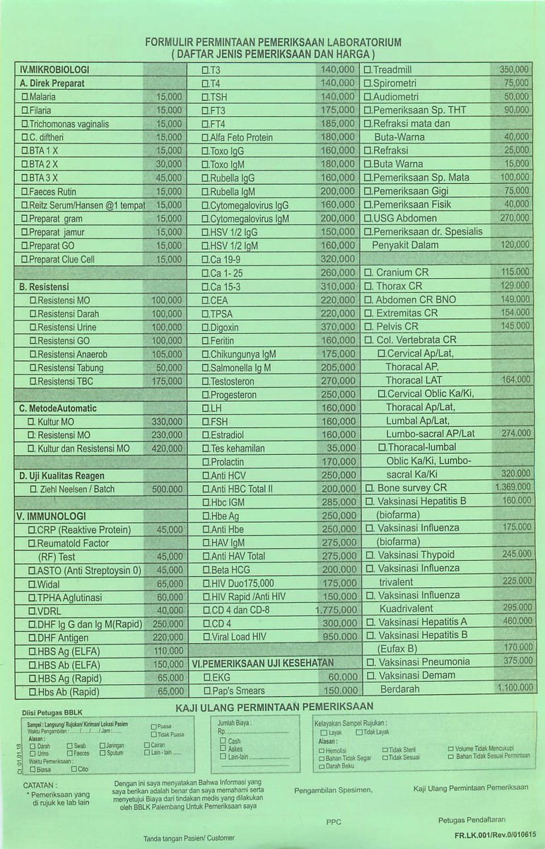Tarif rp paket pemeriksaan rp alur pelayanan. Bblkpalembang balai besar lab kesehatan palembang jl. Kepala cabang pt hutama karya tol terpeka yoni satyo memastikan pemberlakuan tarif tol lampung palembang tersebut kamis 2 1 2020. Bblk kembali memberi diskon 10 kepada pelanggan setia bblk palembang untuk semua jenis pemeriksaan.